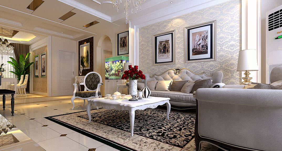 海情御園147㎡三室二廳新簡歐風(fēng)格客廳裝修裝修效果圖