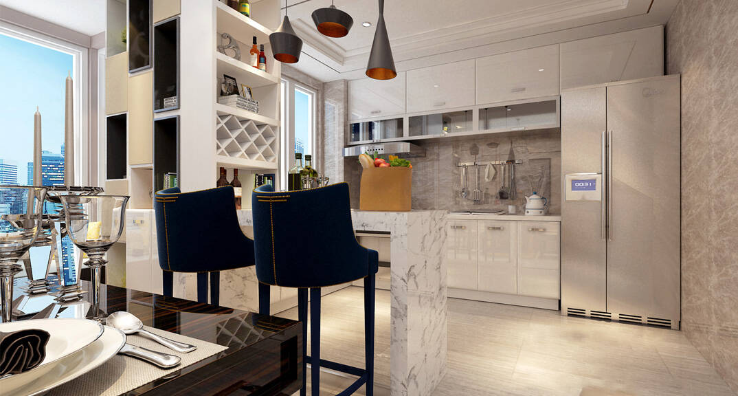 山水名園149㎡三室二廳現(xiàn)代風(fēng)格廚房及吧臺裝修效果圖