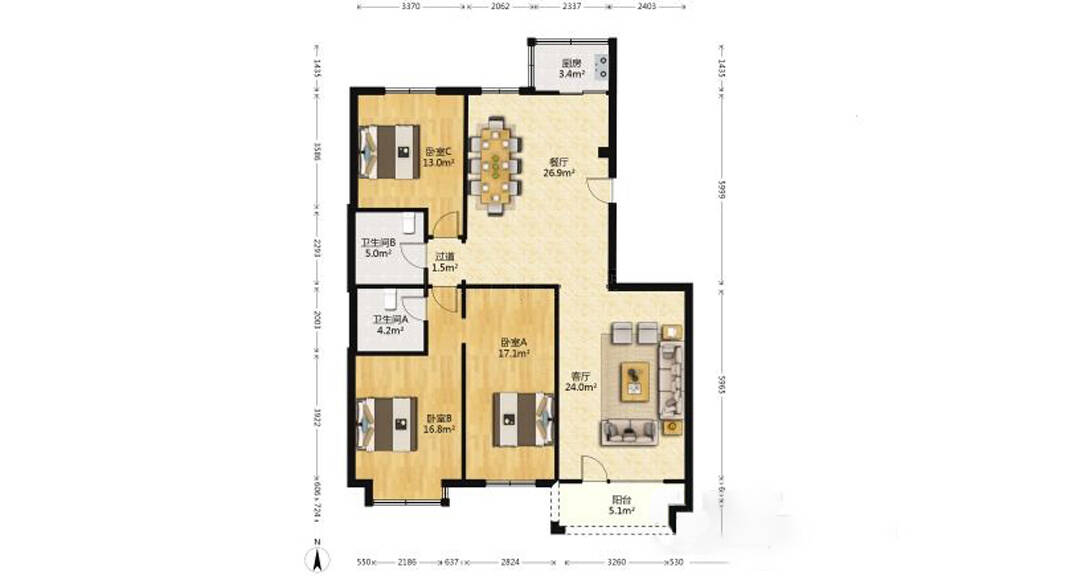 銀都花園135㎡三室兩廳現(xiàn)代風(fēng)格裝修案例效果圖