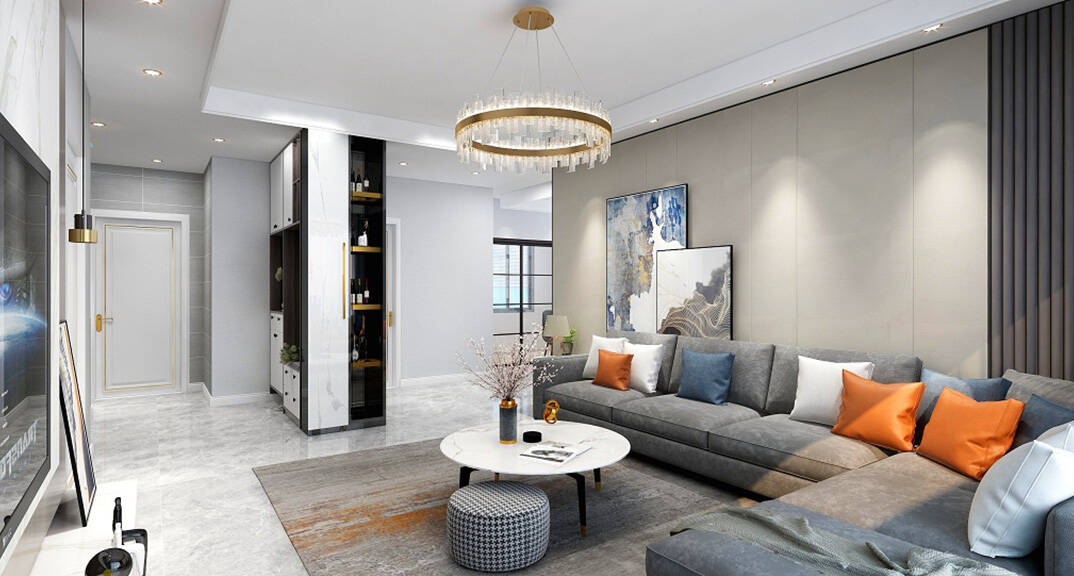 本案設(shè)計風(fēng)格為意式輕奢,拒絕了濃烈的色彩,以一種簡單、純粹的設(shè)計語言,回歸生活的本質(zhì),留存給居住者更多生活想象的空間。 整體空間灰橙色、駝色、與淺暖灰色調(diào)展現(xiàn)輕奢低調(diào)的高級質(zhì)感,簡約時尚的家具又增添了一份現(xiàn)代感,重新梳理了空間功能和尺寸,客廳陽臺一體化設(shè)計,最大限度引入自然光,高級灰搭配中性色系木飾面,打造一個舒適的高品質(zhì)空間。在空間設(shè)計與色彩配搭上,精準(zhǔn)地把控節(jié)奏,用設(shè)計表達(dá)空間的包容性,更多的是通過人性化思考,創(chuàng)造一個功能性完整的舒適生活空間。大塊的木飾面、金屬元素和燈 光的碰撞搭配,凸顯出強(qiáng)大張力,共同打造出意式輕奢腔調(diào)十足的時尚與質(zhì)感。