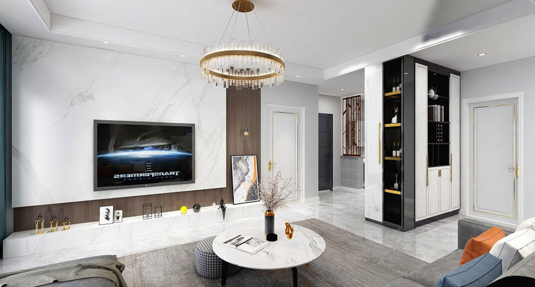 影都壹號127㎡三室兩廳意式輕奢風(fēng)格裝修案例效果圖