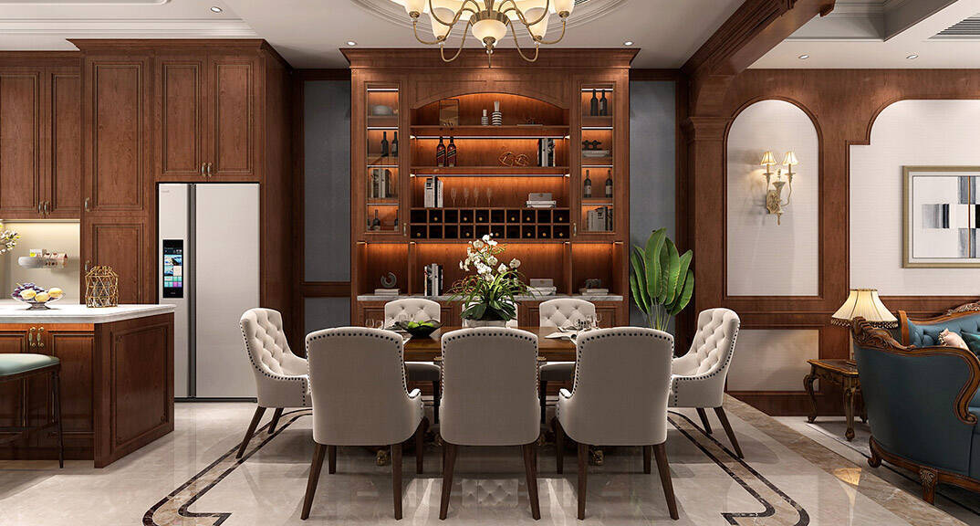 闞濟浪長水山莊238平別墅歐式風格餐廳裝修效果圖