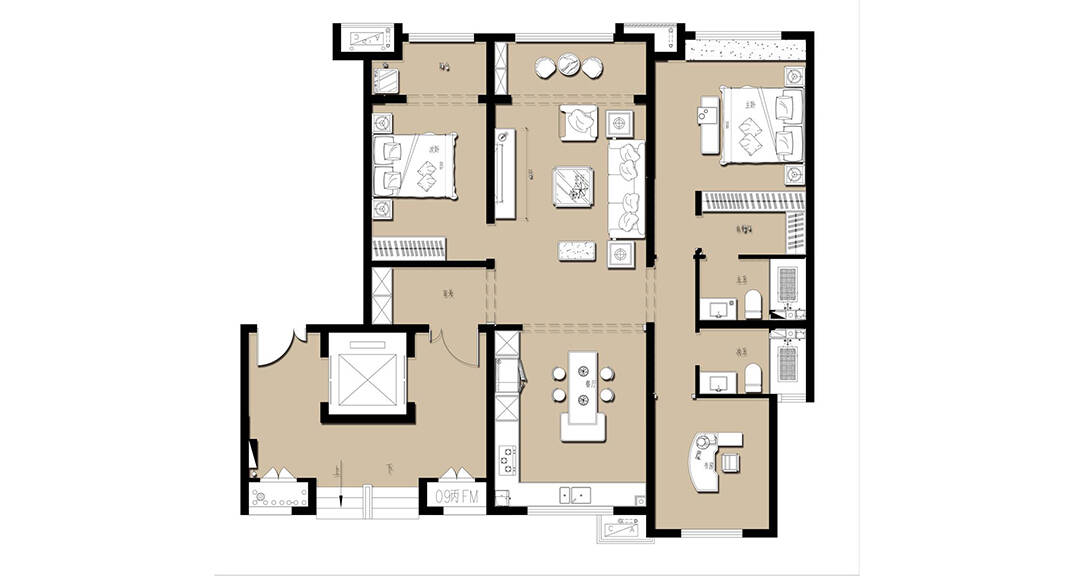 影都壹號127㎡三室兩廳意式輕奢風格裝修案例效果圖