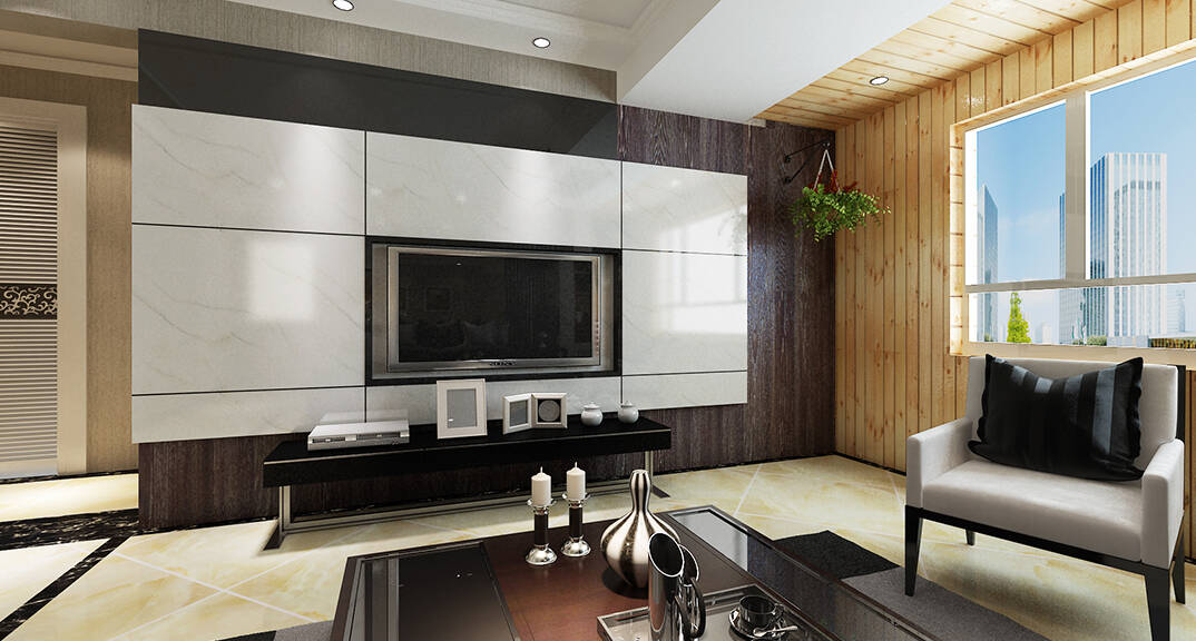 海爾·鼎世華府133㎡三室一廳客廳電視墻新簡約風(fēng)格裝修效果圖