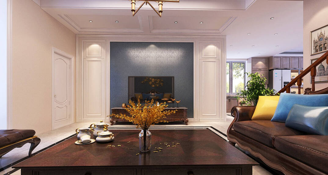 安納溪236m2別墅客廳美式風(fēng)格裝修案例效果圖