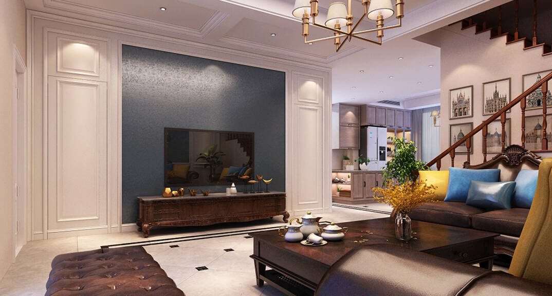 安納溪236m2別墅客廳電視墻美式風(fēng)格裝修案例效果圖