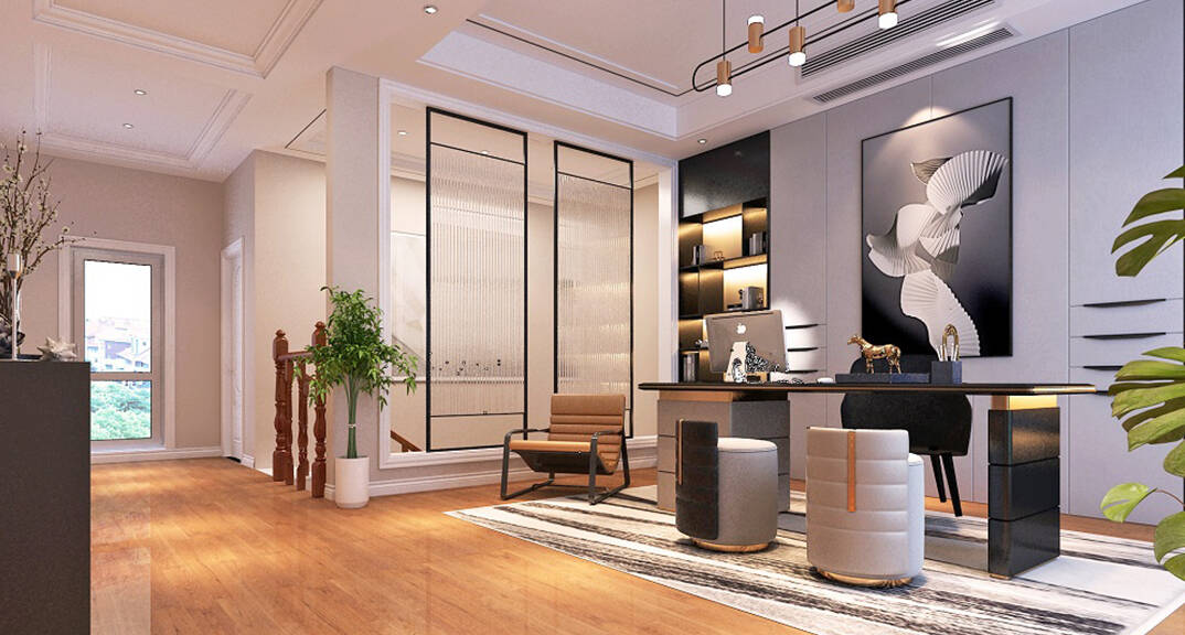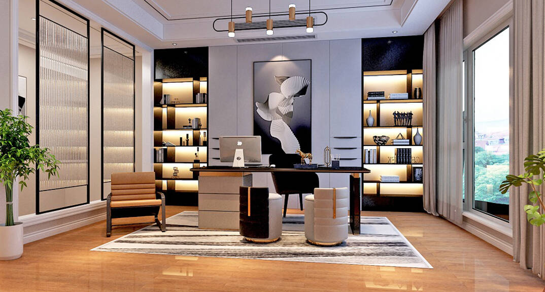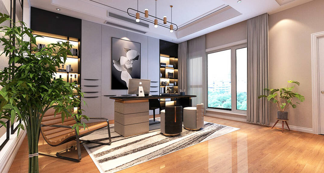 安納溪236m2別墅書房美式風(fēng)格裝修案例效果圖