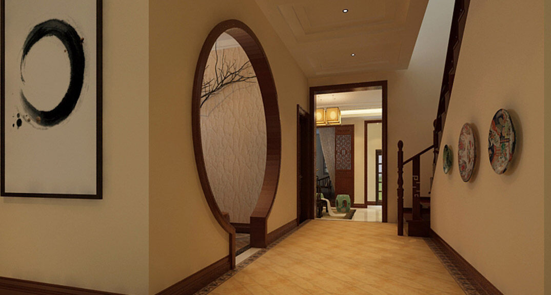 銀盛泰德郡220㎡別墅入戶過道走廊新中式風(fēng)格裝修案例效果圖