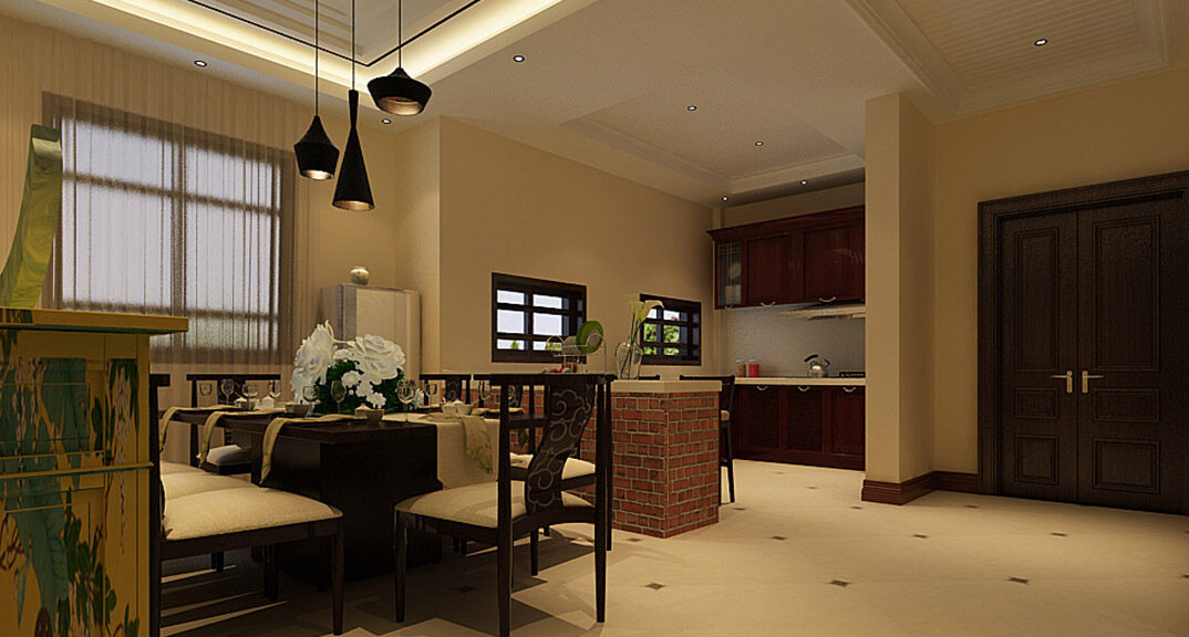 銀盛泰德郡220㎡別墅一層餐廳及廚房新中式風(fēng)格裝修案例效果圖