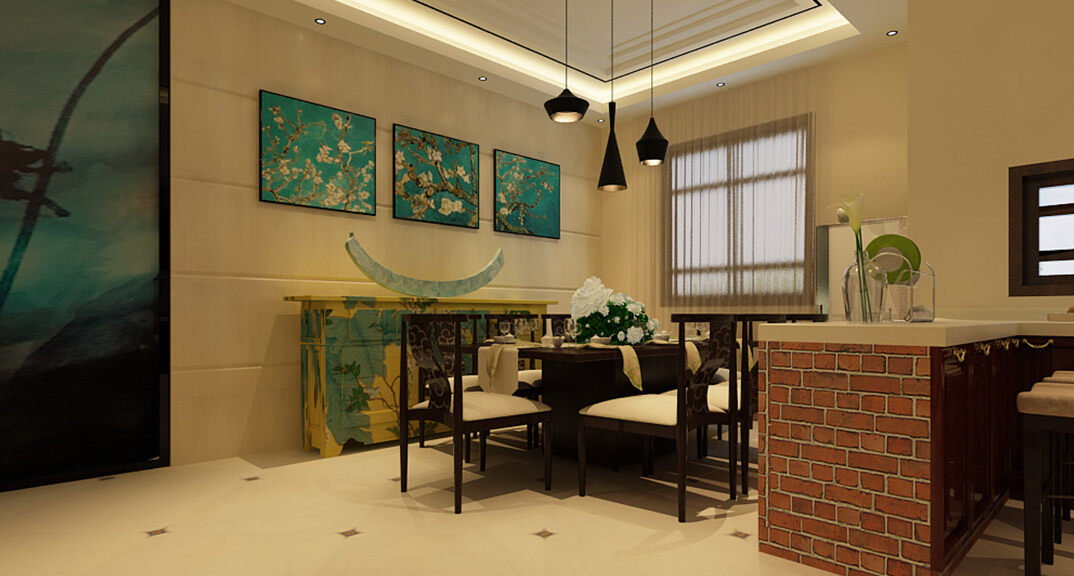 銀盛泰德郡220㎡別墅一層餐廳新中式風(fēng)格裝修案例效果圖