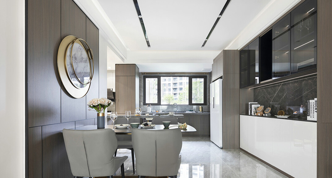 桃李芳菲4室2廳2廚1衛(wèi)141㎡廚房餐廳現(xiàn)代輕奢風格裝修效果圖