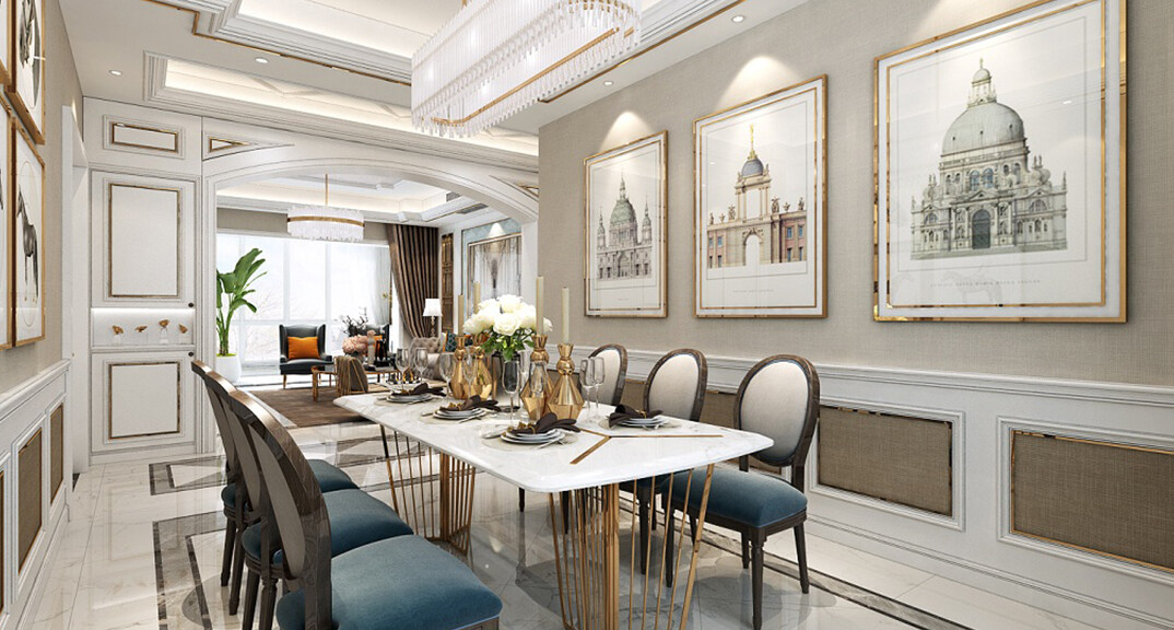 海德堡170㎡三室二廳客餐廳關(guān)輕奢風(fēng)格裝修效果圖