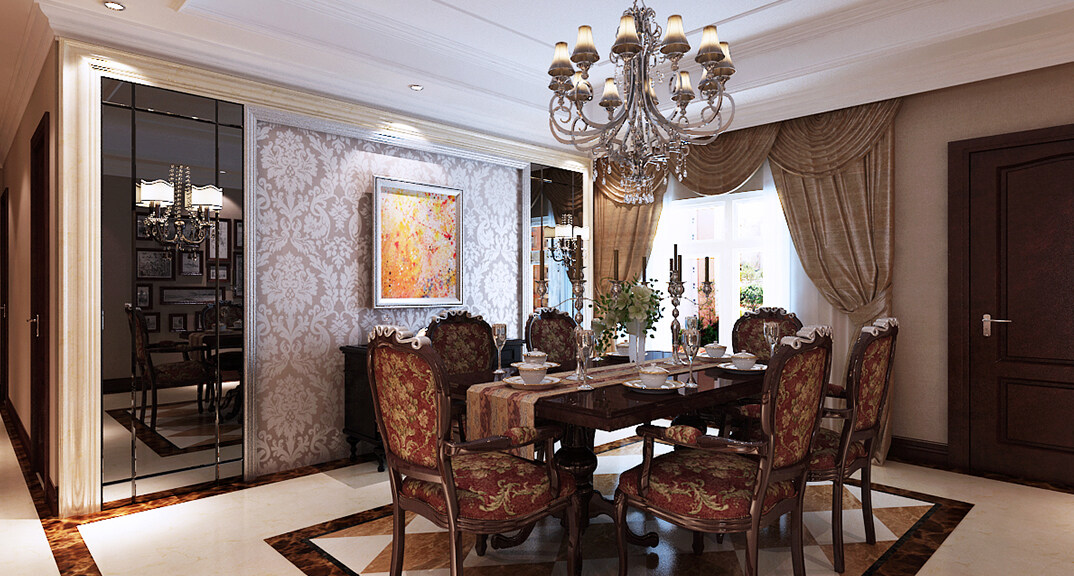 麥島金岸198㎡四室兩廳餐廳新中式風(fēng)格裝修案例效果圖