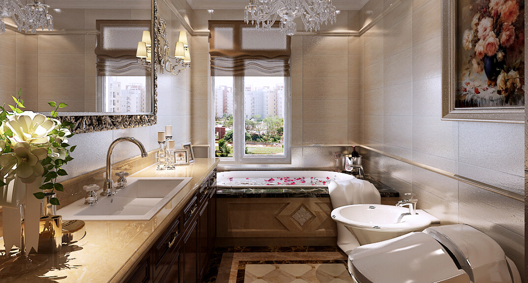 麥島金岸198㎡四室兩廳衛(wèi)生間新中式風(fēng)格裝修案例效果圖
