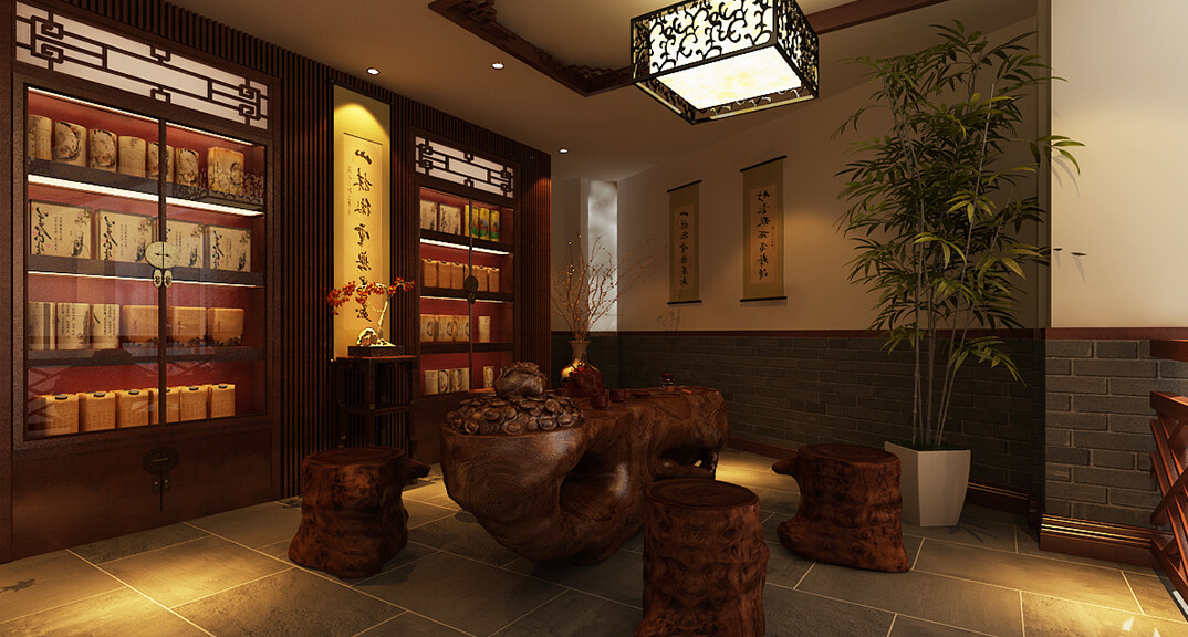 蟻干堂藥店240㎡工裝新中式風格裝修案例效果圖
