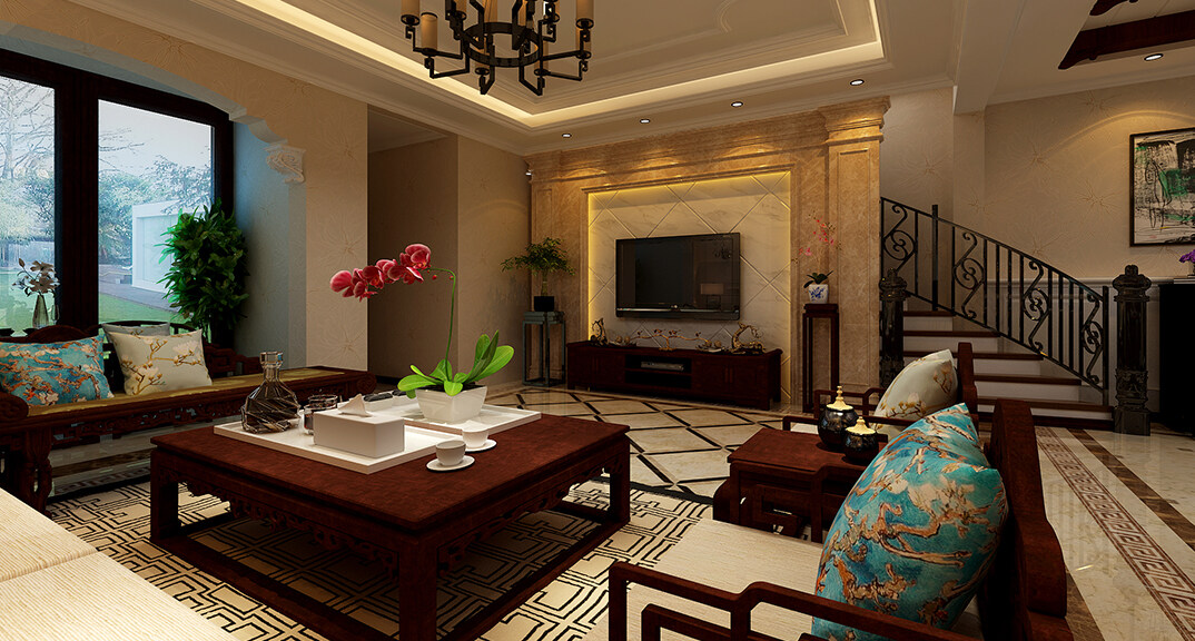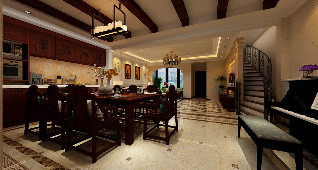 水清花園260㎡別墅歐式風(fēng)格裝修案例效果圖