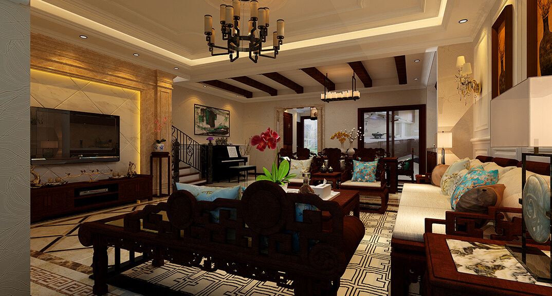 楓林小鎮(zhèn)160㎡聯(lián)排別墅新中式風(fēng)格裝修案例效果圖