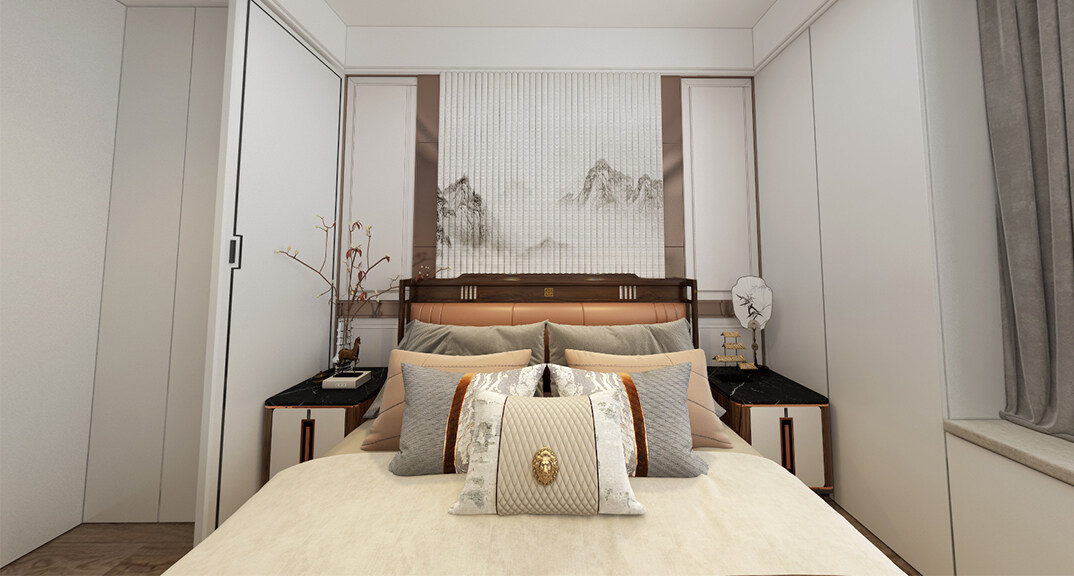 青安·海悅居86㎡二室二廳主臥新中式風(fēng)格裝修案例效果圖