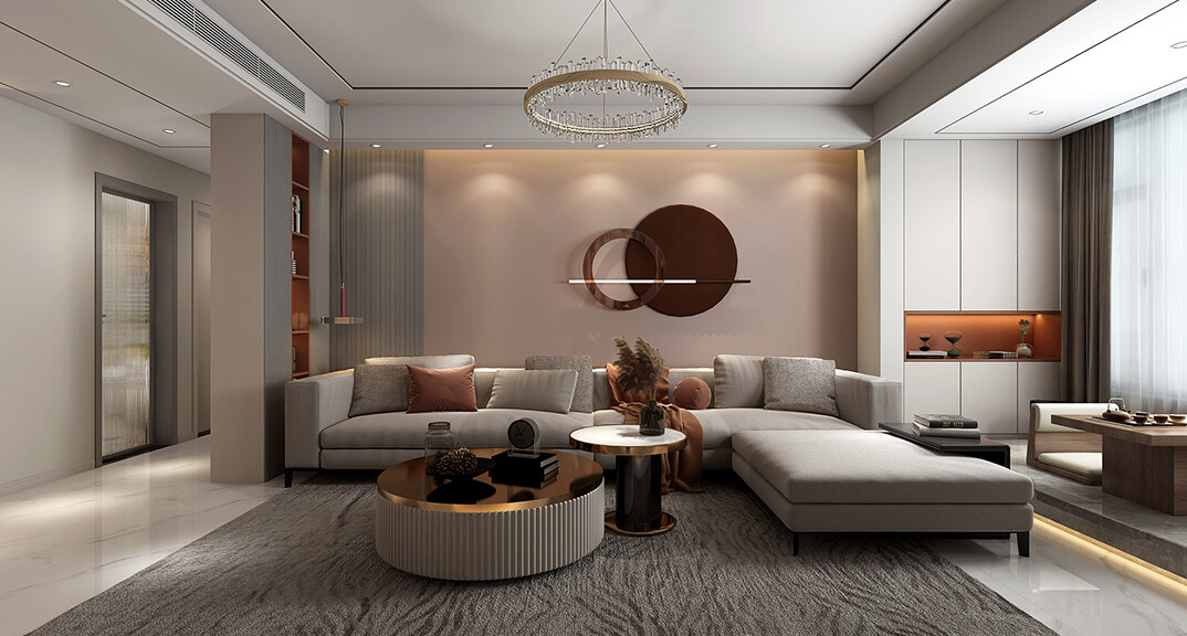 本案設(shè)計(jì)風(fēng)格為意式輕奢,拒絕了濃烈的色彩,以一種簡(jiǎn)單、純粹的設(shè)計(jì)語(yǔ)言,回歸生活的本質(zhì),留存給居住者更多生活想象的空間。 整體空間灰橙色、駝色、與淺暖灰色調(diào)展現(xiàn)輕奢低調(diào)的高級(jí)質(zhì)感,簡(jiǎn)約時(shí)尚的家具又增添了一份現(xiàn)代感,重新梳理了空間功能和尺寸,客廳陽(yáng)臺(tái)一體化設(shè)計(jì),最大限度引入自然光,高級(jí)灰搭配中性色系木飾面,打造一個(gè)舒適的高品質(zhì)空間。在空間設(shè)計(jì)與色彩配搭上,精準(zhǔn)地把控節(jié)奏,用設(shè)計(jì)表達(dá)空間的包容性,更多的是通過(guò)人性化思考,創(chuàng)造一個(gè)功能性完整的舒適生活空間。大塊的木飾面、金屬元素和燈 光的碰撞搭配,凸顯出強(qiáng)大張力,共同打造出意式輕奢腔調(diào)十足的時(shí)尚與質(zhì)感。