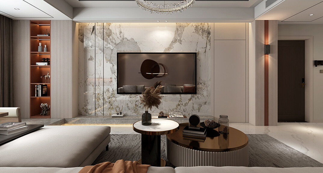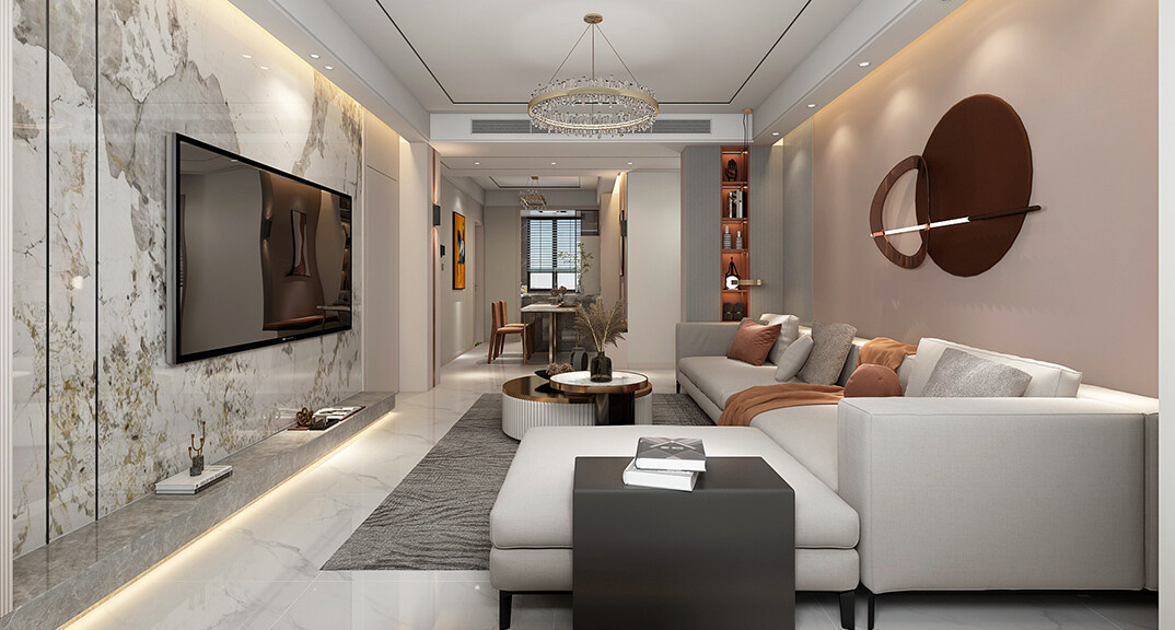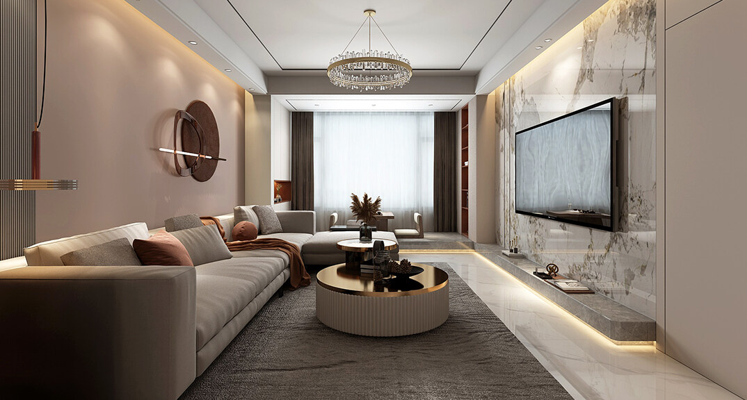 華能郡府139㎡平層客廳現(xiàn)代輕奢風(fēng)格裝修案例效果圖