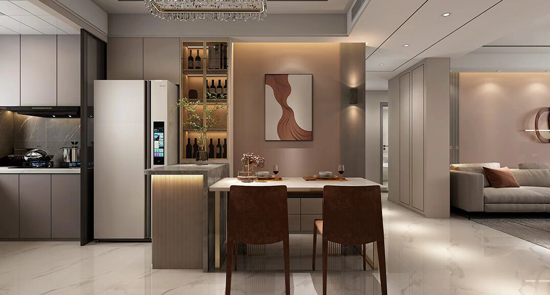 華能郡府139㎡平層餐廳現(xiàn)代輕奢風(fēng)格裝修案例效果圖