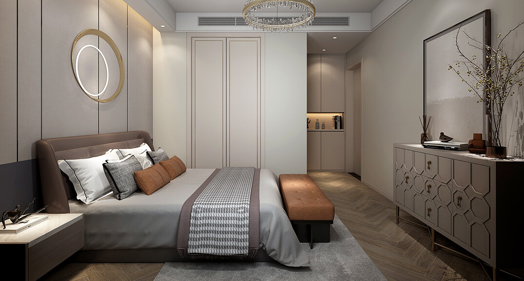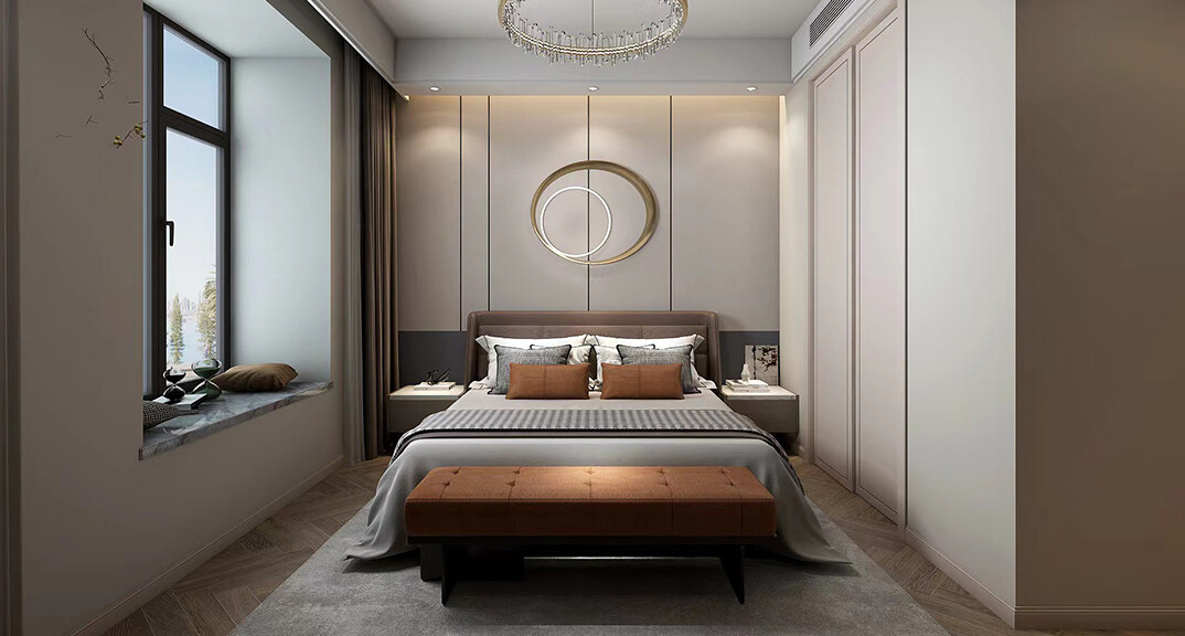 華能郡府139㎡平層主臥現(xiàn)代輕奢風(fēng)格裝修案例效果圖