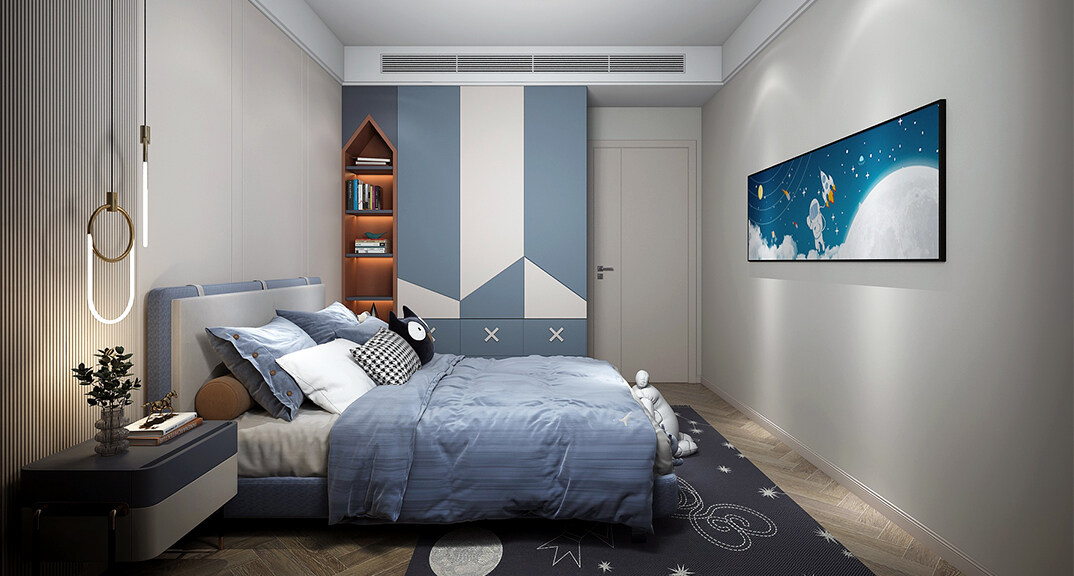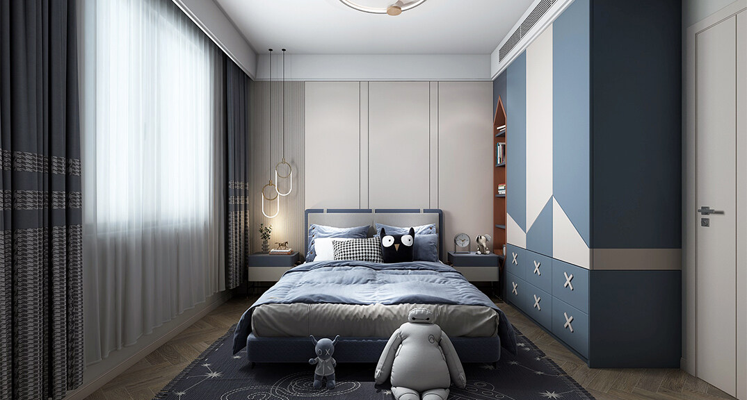 華能郡府139㎡平層兒童房現(xiàn)代輕奢風(fēng)格裝修案例效果圖