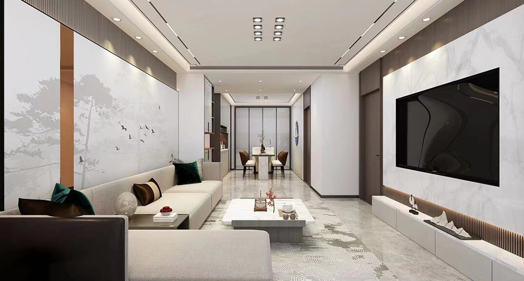 海信·依云小鎮(zhèn)135㎡三室一廳客廳新中式風(fēng)格裝修案例效果圖