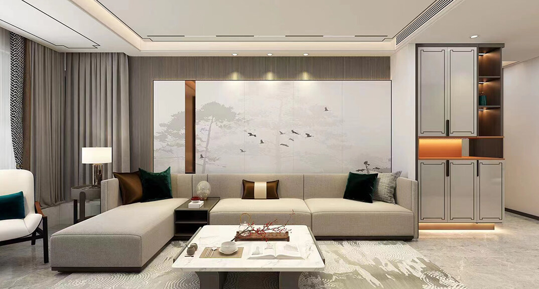 新中式,完美詮釋東方簡(jiǎn)潔極致美感!本案設(shè)計(jì)根據(jù)客戶需求定位為新中式風(fēng)格。新中式風(fēng)格注重的是功能性與時(shí)尚性的完美結(jié)合,滿足功能性的情況下又能夠傳達(dá)給人一種自身的時(shí)尚優(yōu)雅品味與文化情懷,現(xiàn)代人的學(xué)習(xí)工作都講求快捷、高效,在生活?yuàn)蕵?lè)時(shí)就希望把腳步放慢,回歸到輕快放松的自然環(huán)境中。本案在選擇室內(nèi)軟裝飾的時(shí)候大多選擇金屬材質(zhì)、時(shí)尚元素相結(jié)合的飾品,看上去格調(diào)高雅,并且給人一種身心放松的感覺(jué)。