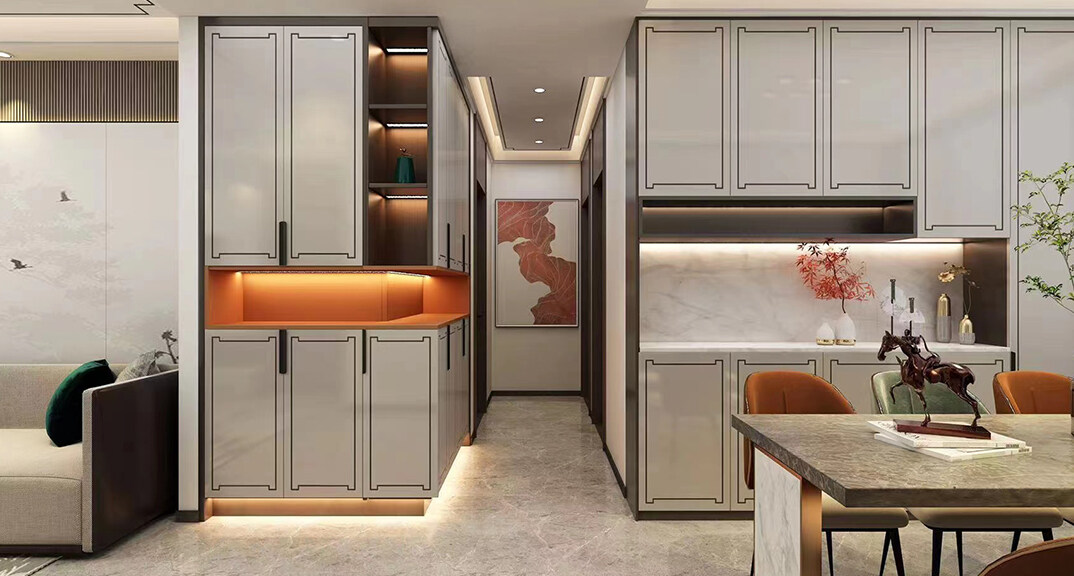 本案整體以現(xiàn)代中式風(fēng)格為主,既有現(xiàn)代風(fēng)格簡(jiǎn)約、明朗的線條,又有中國(guó)傳統(tǒng)內(nèi)涵與韻味。墻面大面積使用暖色烘托整體氛圍,融洽中式與現(xiàn)代簡(jiǎn)約兩種風(fēng)格。空間更寬闊舒適玄關(guān)收納、玄關(guān)與干區(qū)相結(jié)合,既解放的外衛(wèi)的空間客廳電視背景是一面裝飾柜,豐富了空間,增加了收納和儲(chǔ)物,美觀又實(shí)用。