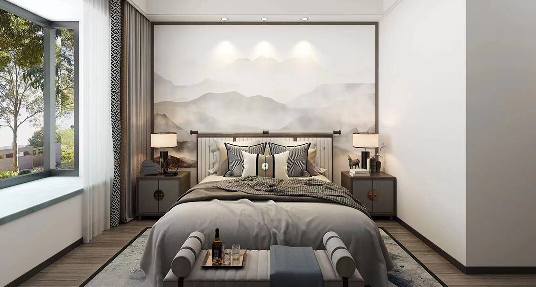 海信·依云小鎮(zhèn)135㎡三室一廳主臥新中式風(fēng)格裝修案例效果圖