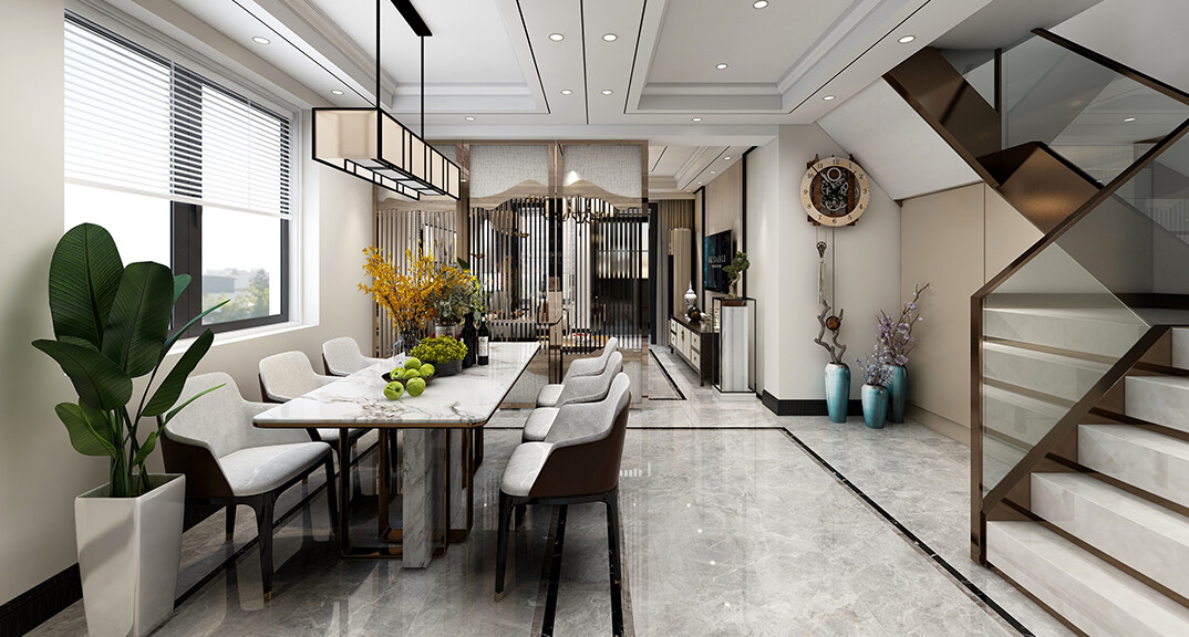 楓林小鎮(zhèn)160㎡聯(lián)排別墅餐廳新中式風格裝修案例效果圖
