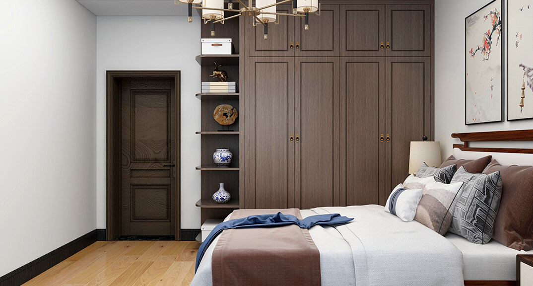 楓林小鎮(zhèn)160㎡聯(lián)排別墅主臥新中式風格裝修案例效果圖