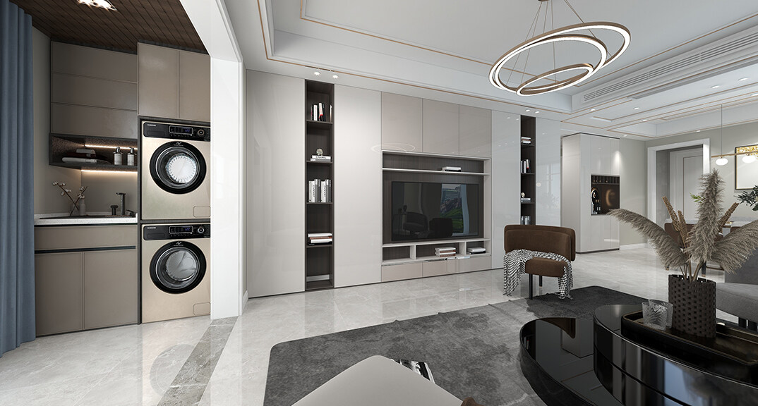 以簡潔、清晰和功能性為特征的室內(nèi)設(shè)計;它主要強調(diào)了空間的簡化和精煉,追求線條簡單、空間通透、色彩明亮、材質(zhì)自然等特點,注重形式與功能的結(jié)合。他們希望有一個時尚、現(xiàn)代的功能性空間,在整個空間的設(shè)計上用了暖灰調(diào)來與簡約的線條感來相呼應(yīng),能改造出一個通透、流暢的空間感。
