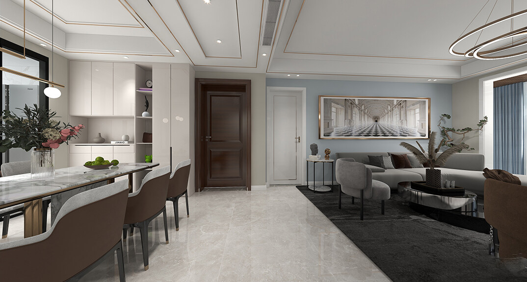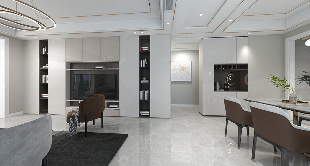 影都壹號127㎡三室兩廳意式輕奢風格裝修案例效果圖