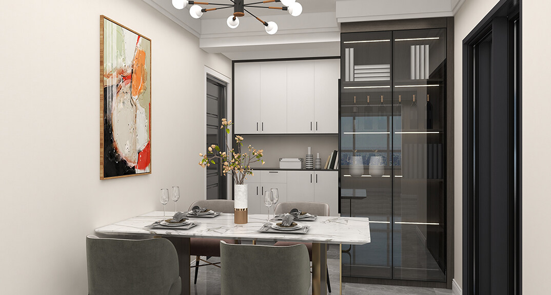 金地自在城108㎡三室一廳餐廳現(xiàn)代風(fēng)格裝修案例效果圖