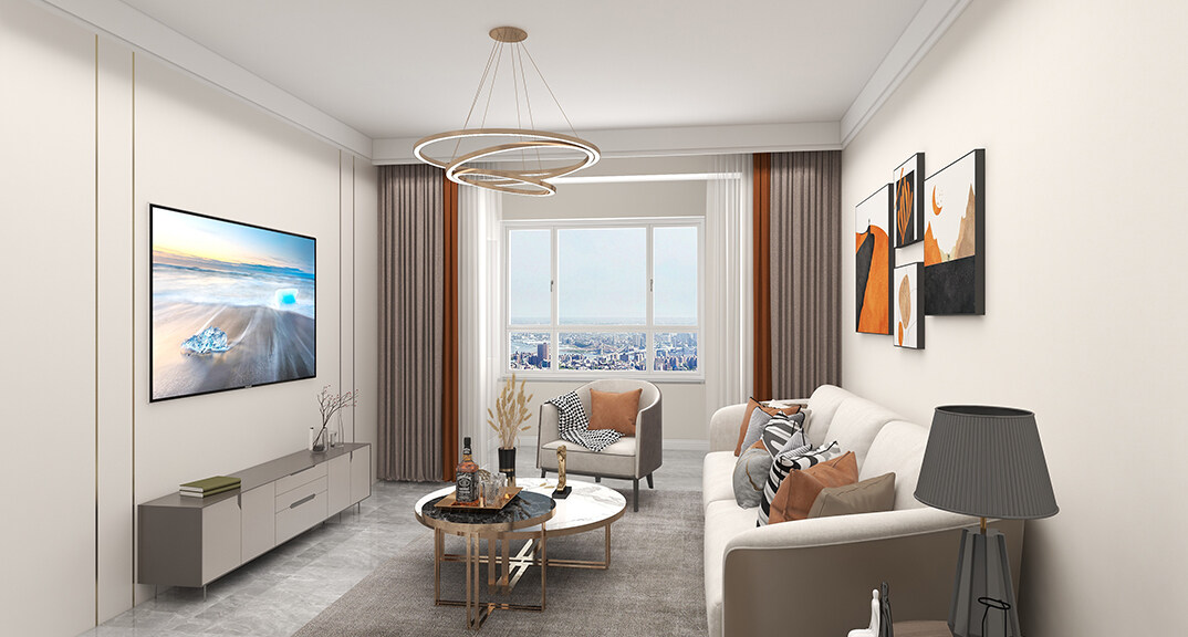 以現(xiàn)代風(fēng)格為主調(diào),主要色彩是米色、淺咖色、白色。在總體布局方面滿足寬敞明亮的需求,注重居室空間的布局與使用功能的完美結(jié)合。整體簡約又不失設(shè)計(jì)感,開放式布局空間聯(lián)通,動(dòng)線流暢??蛷d米灰色系的沙發(fā),造型簡約,搭配材質(zhì)柔軟的軟裝,使客廳充滿閑話自在的空間氛圍。