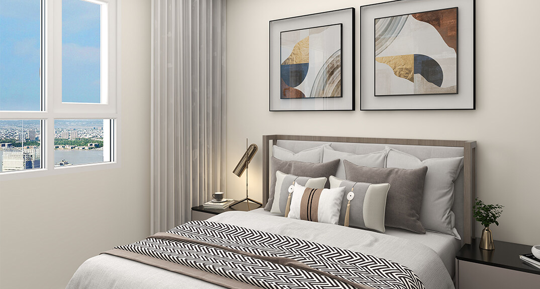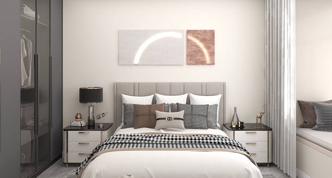 金地自在城108㎡三室一廳主臥現(xiàn)代風(fēng)格裝修案例效果圖