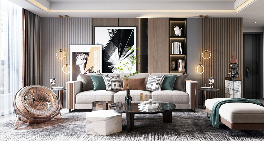 輕奢風(fēng)格的空間以金屬、皮革的中性色調(diào)為主,用色彩的純度傳遞細(xì)膩的質(zhì)感。造型簡(jiǎn)潔,線條流暢的家具組合搭配,營(yíng)造出穩(wěn)定、協(xié)調(diào)、溫馨的空間感受,滿足現(xiàn)代年輕家庭的輕奢需求。在靜態(tài)中詮釋交融的美感,在動(dòng)態(tài)中繪就藝術(shù)的姿態(tài)。留白的設(shè)計(jì)為冥想提供了肅靜的氛圍,讓理性溫柔的空間中,增加了優(yōu)雅的生活情調(diào)??臻g中最撩人非自然光莫屬,陽光灑入營(yíng)造出別樣的畫面感。