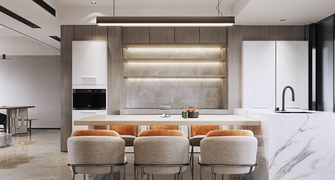 以簡(jiǎn)潔、清晰和功能性為特征的室內(nèi)設(shè)計(jì);它主要強(qiáng)調(diào)了空間的簡(jiǎn)化和精煉,追求線(xiàn)條簡(jiǎn)單、空間通透、色彩明亮、材質(zhì)自然等特點(diǎn),注重形式與功能的結(jié)合。他們希望有一個(gè)時(shí)尚、現(xiàn)代的功能性空間,在整個(gè)空間的設(shè)計(jì)上用了暖灰調(diào)來(lái)與簡(jiǎn)約的線(xiàn)條感來(lái)相呼應(yīng),能改造出一個(gè)通透、流暢的空間感。