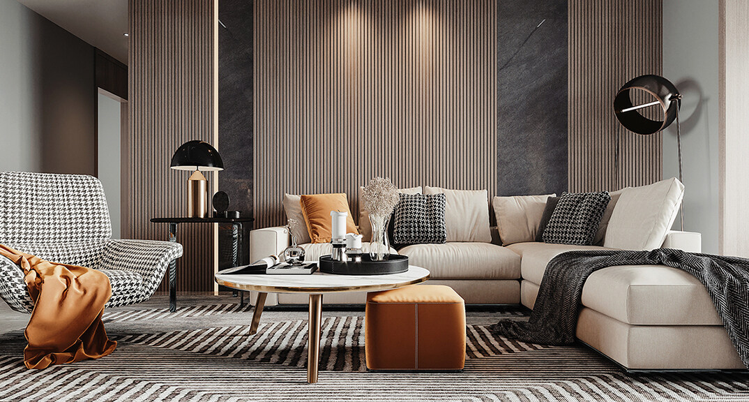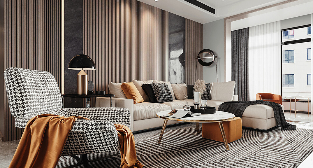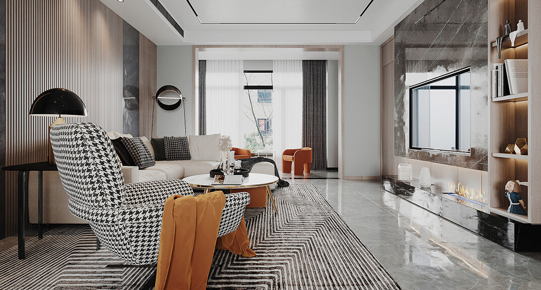 本案設(shè)計(jì)風(fēng)格為意式輕奢,拒絕了濃烈的色彩,以一種簡(jiǎn)單、純粹的設(shè)計(jì)語(yǔ)言,回歸生活的本質(zhì),留存給居住者更多生活想象的空間。 整體空間灰橙色、駝色、與淺暖灰色調(diào)展現(xiàn)輕奢低調(diào)的高級(jí)質(zhì)感,簡(jiǎn)約時(shí)尚的家具又增添了一份現(xiàn)代感,重新梳理了空間功能和尺寸,客廳陽(yáng)臺(tái)一體化設(shè)計(jì),最大限度引入自然光,高級(jí)灰搭配中性色系木飾面,打造一個(gè)舒適的高品質(zhì)空間。在空間設(shè)計(jì)與色彩配搭上,精準(zhǔn)地把控節(jié)奏,用設(shè)計(jì)表達(dá)空間的包容性,更多的是通過人性化思考,創(chuàng)造一個(gè)功能性完整的舒適生活空間。大塊的木飾面、金屬元素和燈 光的碰撞搭配,凸顯出強(qiáng)大張力,共同打造出意式輕奢腔調(diào)十足的時(shí)尚與質(zhì)感。