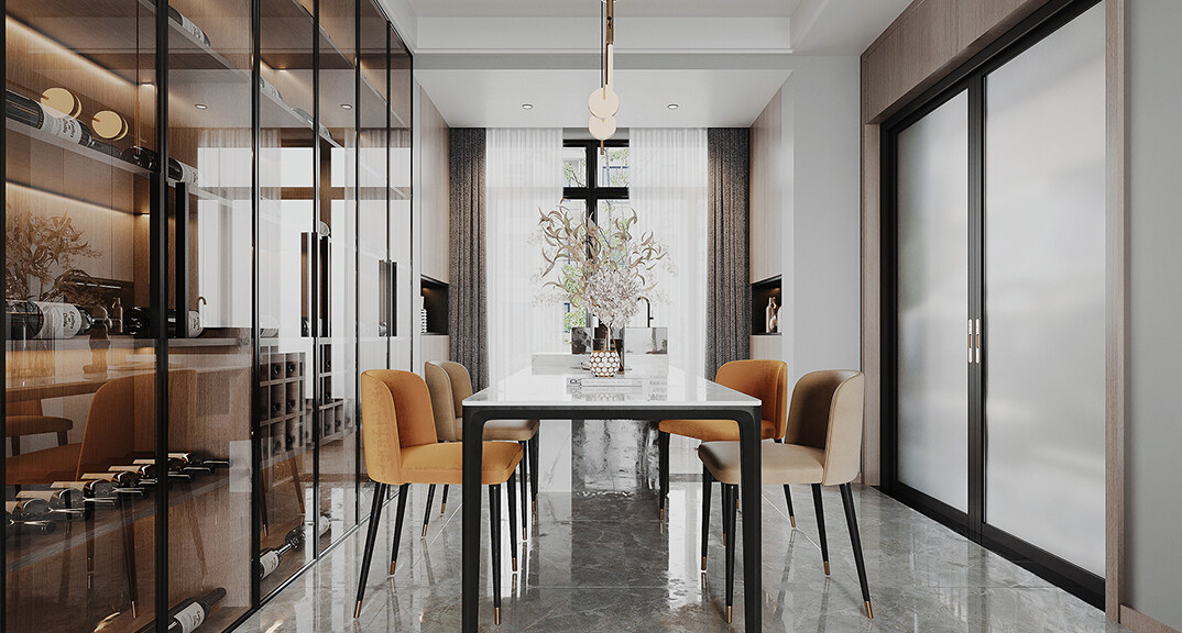 浮山灣小區(qū)136㎡三室兩廳餐廳輕奢風(fēng)格裝修案例效果圖