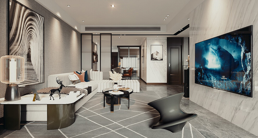 影都壹號127㎡三室兩廳意式輕奢風(fēng)格裝修案例效果圖