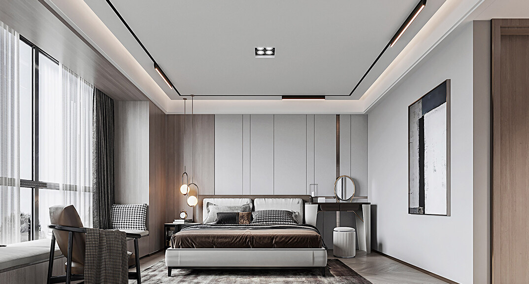 以簡潔、清晰和功能性為特征的室內(nèi)設(shè)計(jì);它主要強(qiáng)調(diào)了空間的簡化和精煉,追求線條簡單、空間通透、色彩明亮、材質(zhì)自然等特點(diǎn),注重形式與功能的結(jié)合。他們希望有一個(gè)時(shí)尚、現(xiàn)代的功能性空間,在整個(gè)空間的設(shè)計(jì)上用了暖灰調(diào)來與簡約的線條感來相呼應(yīng),能改造出一個(gè)通透、流暢的空間感。