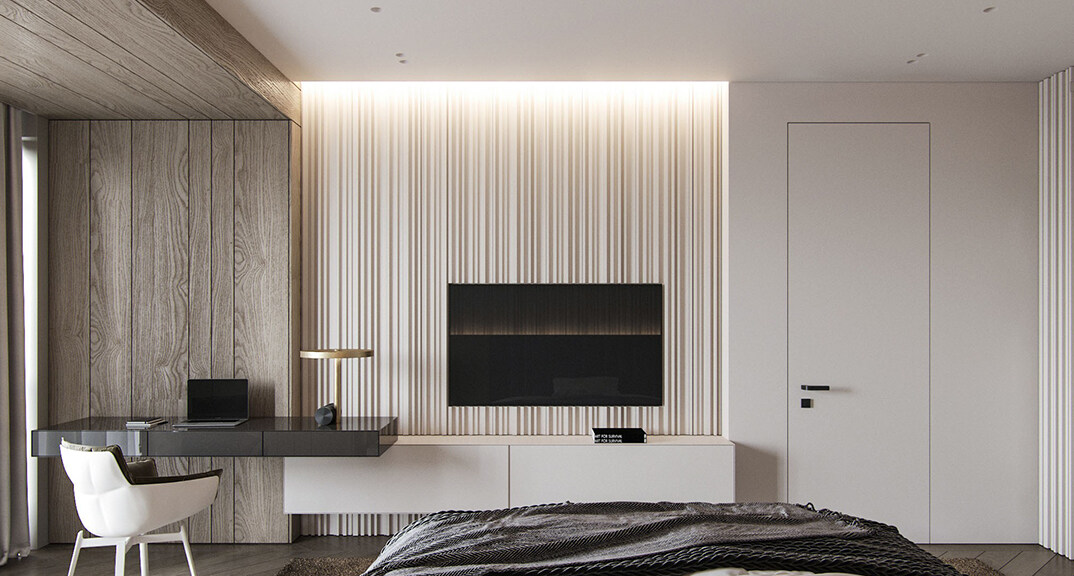 本案設(shè)計(jì)風(fēng)格為意式輕奢,拒絕了濃烈的色彩,以一種簡單、純粹的設(shè)計(jì)語言,回歸生活的本質(zhì),留存給居住者更多生活想象的空間。 整體空間灰橙色、駝色、與淺暖灰色調(diào)展現(xiàn)輕奢低調(diào)的高級質(zhì)感,簡約時(shí)尚的家具又增添了一份現(xiàn)代感,重新梳理了空間功能和尺寸,客廳陽臺一體化設(shè)計(jì),最大限度引入自然光,高級灰搭配中性色系木飾面,打造一個(gè)舒適的高品質(zhì)空間。在空間設(shè)計(jì)與色彩配搭上,精準(zhǔn)地把控節(jié)奏,用設(shè)計(jì)表達(dá)空間的包容性,更多的是通過人性化思考,創(chuàng)造一個(gè)功能性完整的舒適生活空間。大塊的木飾面、金屬元素和燈 光的碰撞搭配,凸顯出強(qiáng)大張力,共同打造出意式輕奢腔調(diào)十足的時(shí)尚與質(zhì)感。