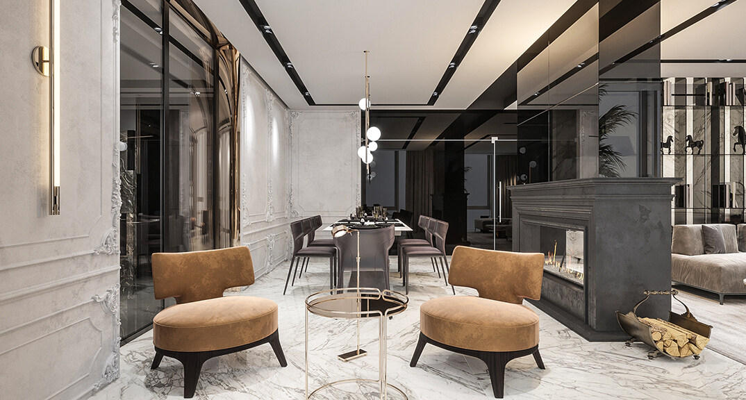 鑫江合院185㎡疊墅客餐廳現(xiàn)代風(fēng)格裝修案例效果圖