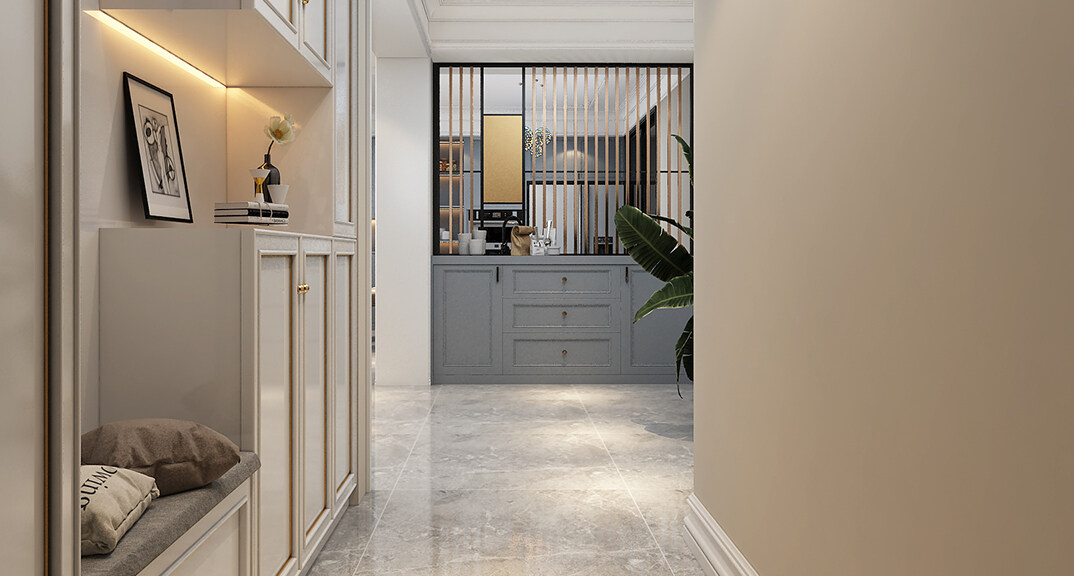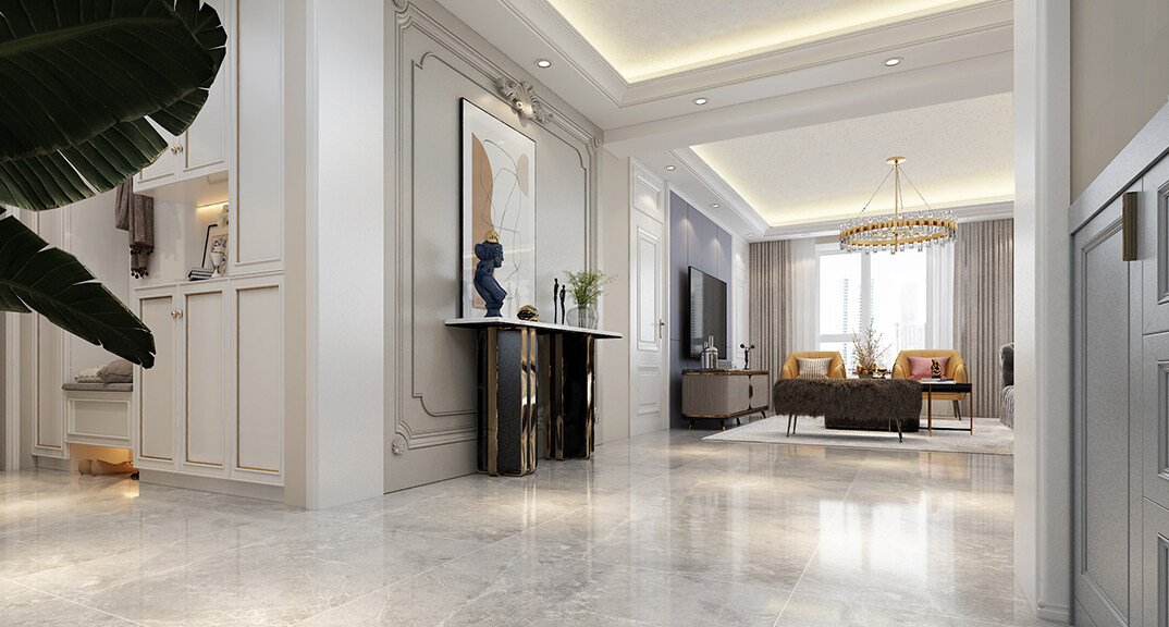 金海廣場154㎡三室一廳入戶玄關(guān)法式輕奢風(fēng)格裝修案例效果圖