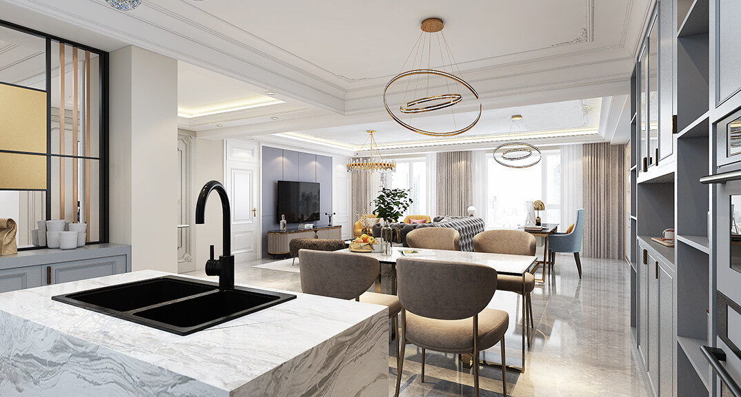 以簡潔、清晰和功能性為特征的室內(nèi)設(shè)計;它主要強調(diào)了空間的簡化和精煉,追求線條簡單、空間通透、色彩明亮、材質(zhì)自然等特點,注重形式與功能的結(jié)合。他們希望有一個時尚、現(xiàn)代的功能性空間,在整個空間的設(shè)計上用了暖灰調(diào)來與簡約的線條感來相呼應(yīng),能改造出一個通透、流暢的空間感。