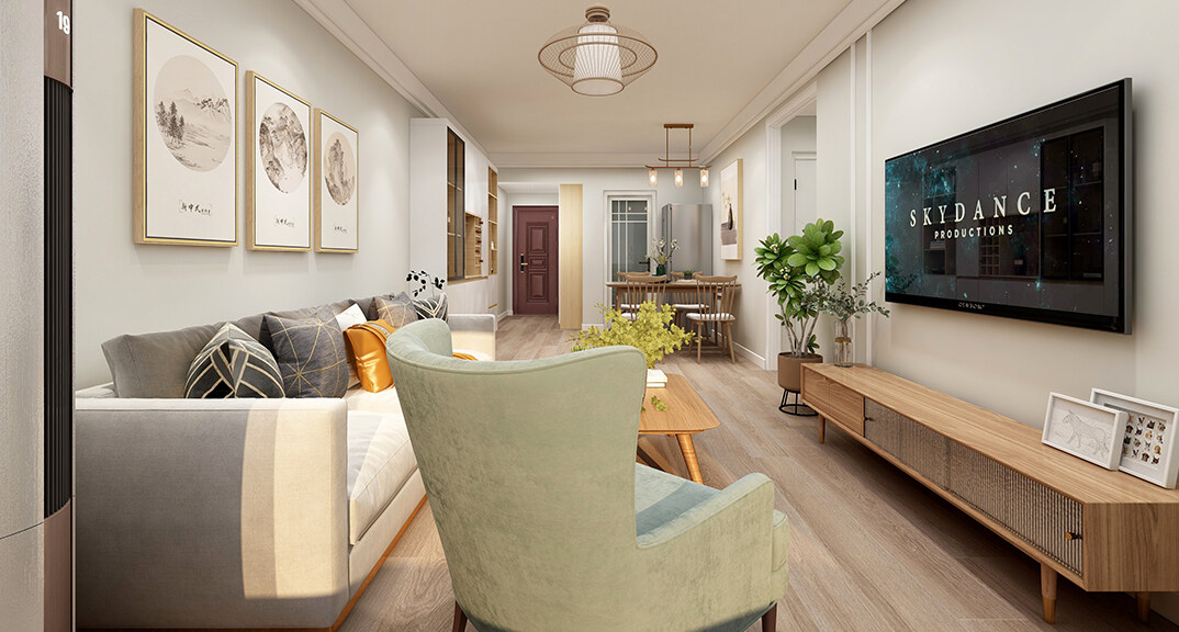 御景新苑89㎡兩室一廳客廳日式風(fēng)格裝修案例效果圖
