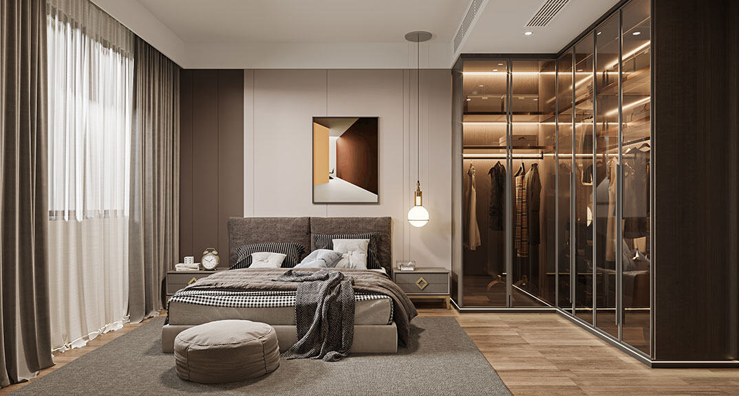 金秋泰和郡318㎡別墅主臥極簡風格裝修案例效果圖